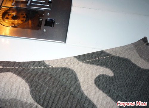 По низу оформляем полоску шириной 2,5-3 см. Низ шорт мы будем шить из отделочной ткани.
