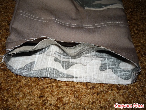 На брючине определяем линию отреза. В дальнейшем в шов мы можем вшить тесьму с украшением, что особенно актуально для девочек.