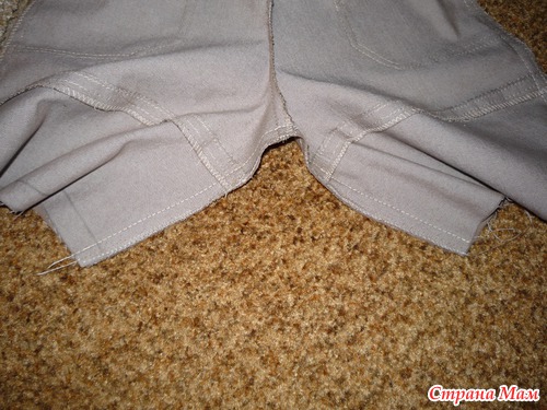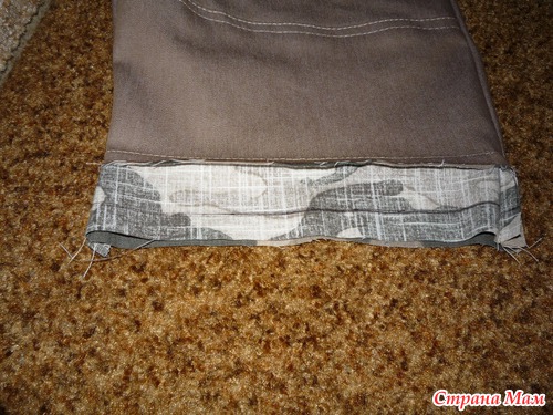 На брючине определяем линию отреза. В дальнейшем в шов мы можем вшить тесьму с украшением, что особенно актуально для девочек.