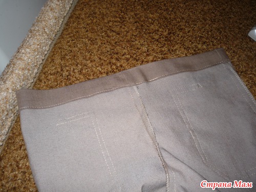 По низу оформляем полоску шириной 2,5-3 см. Низ шорт мы будем шить из отделочной ткани.