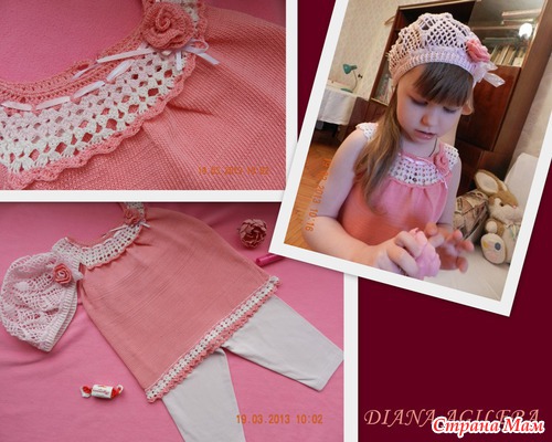 Связала, вот такой комлектик на 3,5-4,5 года... нитки 100% итальянский хлопок. крючок №1,5, гладь машинная вязка... очень легкий не больше 150 грамм... на лето просто отличный, дышит, продувается, легкий, и очень на мой взгляд красивый и удобный)))Цена 200 гр. По России 1200 руб. Пересылка за мой счет.