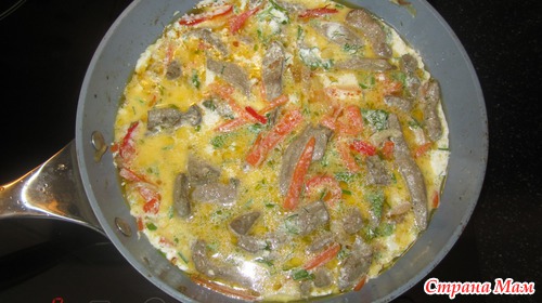 К овощам добавить обжаренную печень и залить сливками. Тушить под крышкой на медленном огне еще 5-10 минут (на ваше усмотрение)
