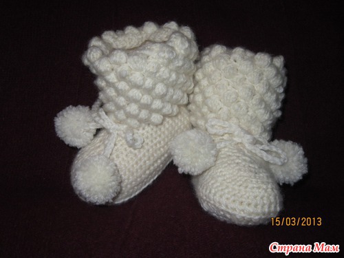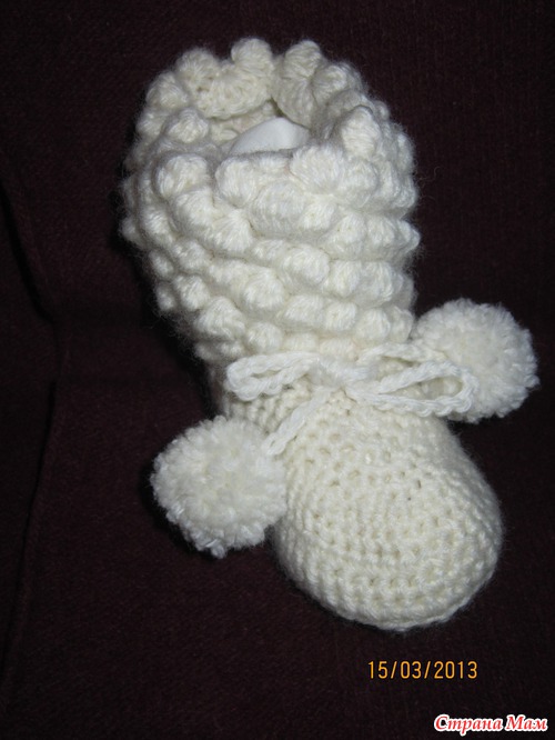 Всем привет. Вот такие сапожки я связала для подружкиной доченьки Полины. Всем спасибо что заглянули.