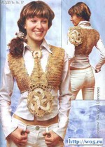 Затем закрыть для пройм с обеих сторон по 6 ст. Через 1 8 см от пройм закрыть для выреза горловины на спинке средние 28 ст. и вязать отдельно каждое плечо (шириной по 1 8 ст. ) ровным полотном на высоту 11 см.