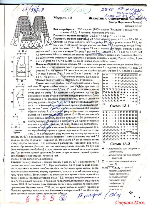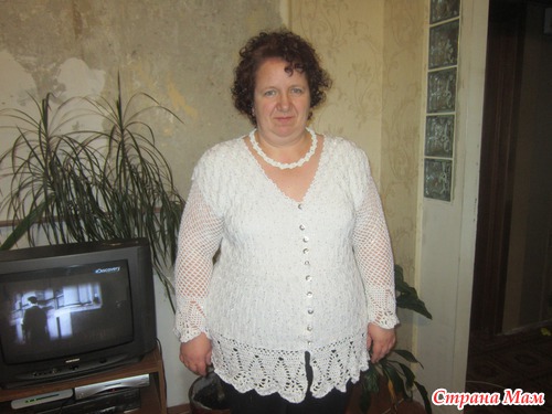 Кофточка связана из турецкой пряжи ALIZE с паетками. Модель взята из журнала Ксюша 2005 №1( из личного архива ) извиняюсь за качество страницы с описанием, если что не понятно - обращайтесь
