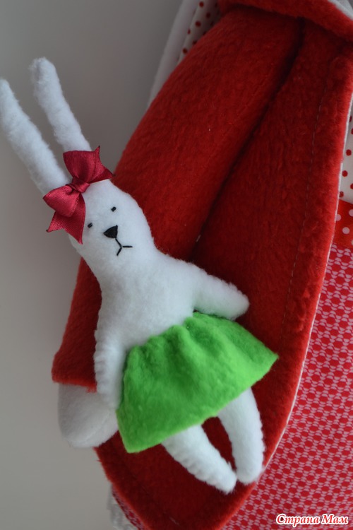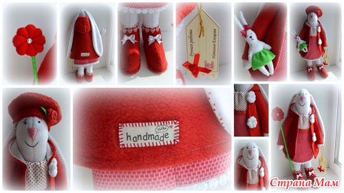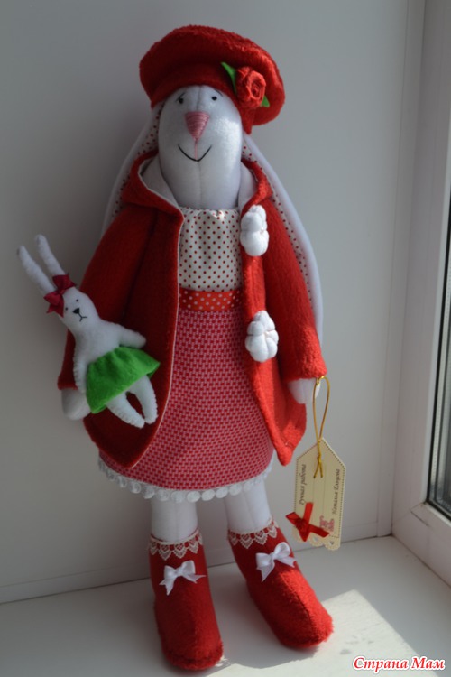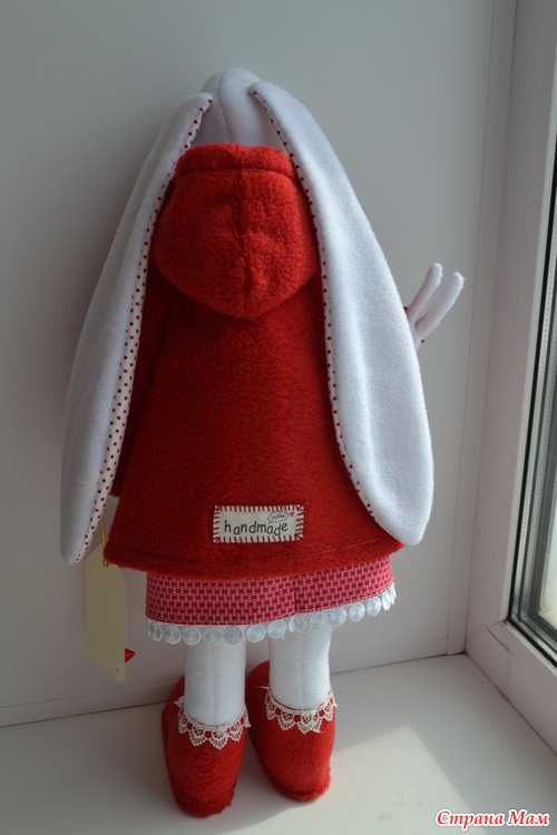 Заказали зайку на день рождение девочке. После родов первый заказ взяла, было даже немного страшновато... Справлюсь ли... НО глаза боятся, а руки делают ))) Рост у зайки 50 см, сшита из флиса, одежда из итальянского хлопка. Во всяком случае, так в магазине тканей сказали))) Мне он показался немного жестковат, по сравнению с американским...