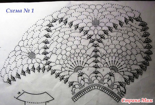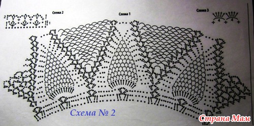 Если размер платьица небольшой, - после кокетки можно вязать юбку по схеме №3. Если девочка старше, - между кокеткой и юбкой необходимо связать несколько переходных рядов по любым схемам (можно и не ананасы), или по схеме №2, но не полностью.