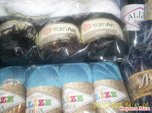 я млею! но не позволяю цопать новые ниточки.пока не довяжу кофту дочери.сейчас в пакеты сложила.а ночью муж с работы придет-выложу свое богатство.и вдвоем побалдеем! он тоже любит ниточки рассматривать.Давно пора бы вязать научиться!но не хочет