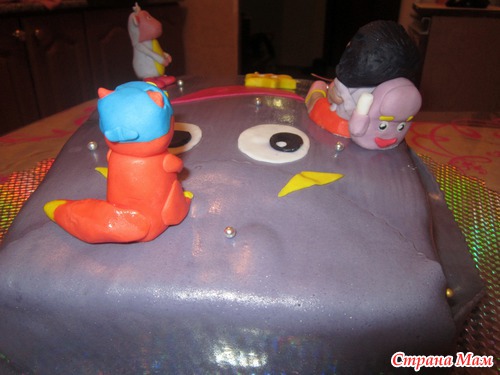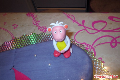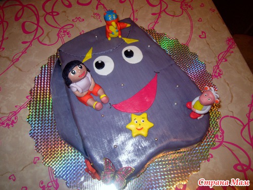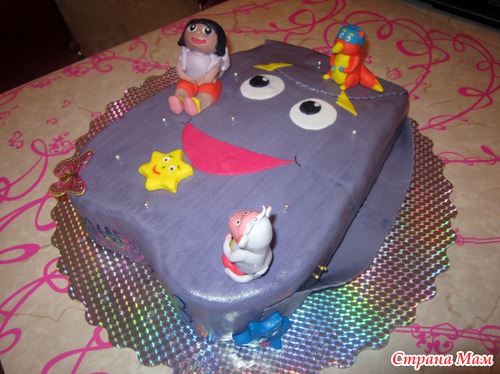 Всем привет! У меня тортик Даша следопыт, попросили Дашу, Жулика и Башмака. Жулик и Башмачок со 2 раза получились, а вот с Дашей,... первый день лепила 3 часа ночью... утром встала, выкинула... не понравилась... вечером переделывала, когда дочу спатки положила.. до 4 утра с ней упражнялась... какая вышла, такая вышла, очень сложный для меня персонаж. Какая то неформат