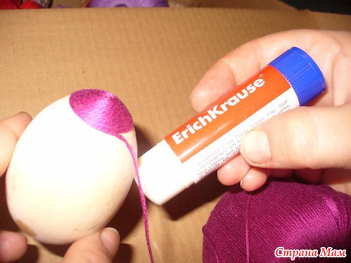 Дойдя до середины яйца, обрежьте нить и начните с тупого конца.