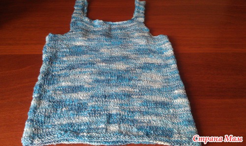 Ох и намучилась я с этими ниточками, мало того что плохо распутывались, да еще и в процессе вязания из клубка распадаются и запутываются. Действительно ниточка такая смотрится только в платочной или чулочной вязке, и то петельки пляшут, хотя я этим не страдаю. Думала после стирки встанут, но нет. Пробовала даже простейшие узоры с накидами тоже не понравилось и отделку пришлось сделать простым ст. б/н. Ну не смотрится эта ниточка в узорах. Вот сделала фото поближе.