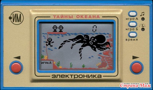 У меня была с водолазами, живая до сих пор, только без батареек. А у дяди "Ну, погоди", тоже частенько брала играть.