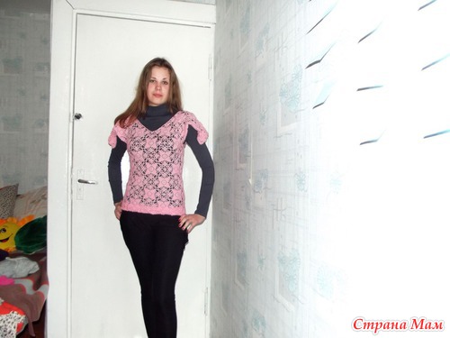 Я давно хотела связать эту кофточку из мотивов, но боялась, что не получится. Мотивы вязать оказалось легко. Самое трудное - это было сшить и заправить все ниточки. Но я справилась. Вот что получилось.