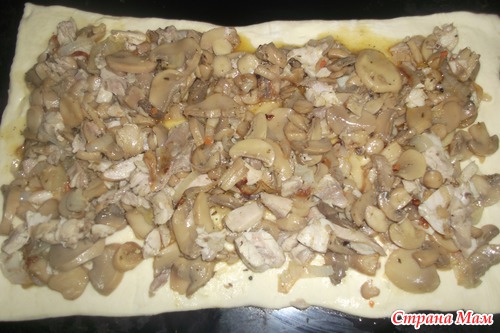начинку выложила ( обжаренный лук, грибы, куриное мясо)