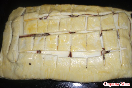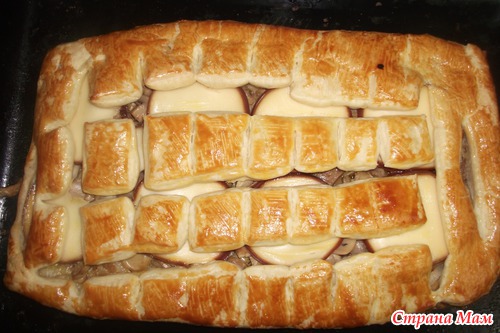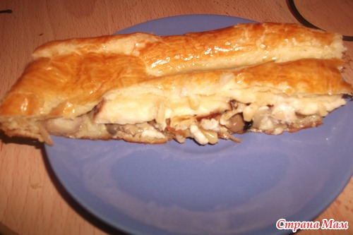 Купила слоеное дрожжевое тесто для пирога с курицей и грибами. Началось все банально. Тесто раскатала,
