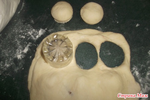 и стопкой вырезала пирожочки ( чуть больше пельмешек получились)