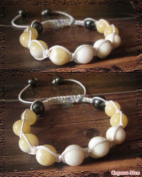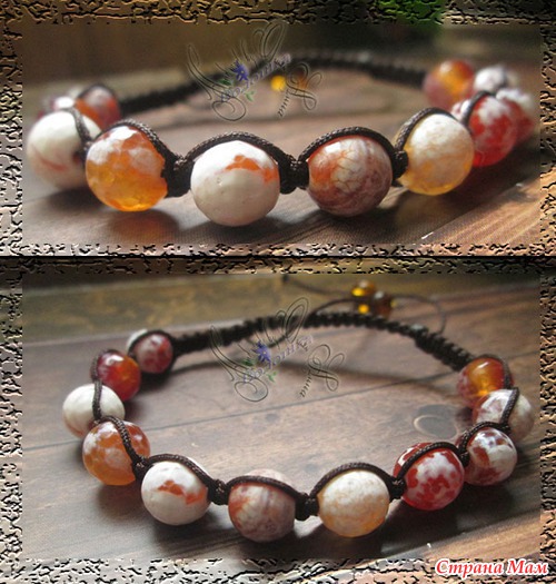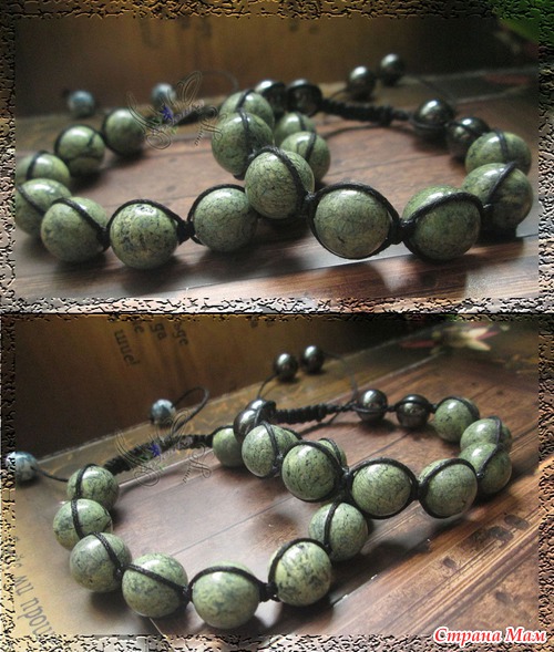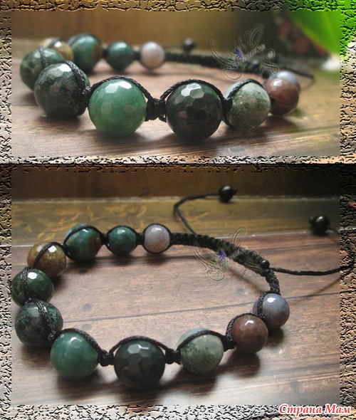 Я плету из бусин натуральных камней, есть парочка из бусин со стразами. Пока покажу то, что наплели с мужем в позапрошлом и прошлом месяце. Всё руки не доходили фотки обработать. А новые браслетики покажу чуть позже - лишь бы снова в долгий ящик обработку фоток не отложить