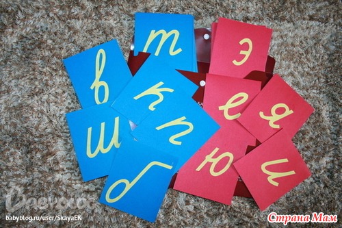 Затем размечаем листы картона карандашом и режем на прямоугольники. Дальше, берем буквы из наждачки и, с помощью клея и кисти, приклеиваем их на прямоугольники. Когда клей чуть-чуть подсохнет, буквы лучше опять отправить в книжку на ночь. А то при полном высыхании клея картон может пойти волной. Ну, вот собственно и все! Придумываем систему для хранения изготовленного шедевра и пользуемся. О том как пользоваться, думаю, что можно найти информацию в интернете. В книгах по Монтессори педагогике тоже приводятся упражнения. Например, "Практическая монтессори педагогика" и "Свободное письмо" Елены Хилтунен. Главное, правильно проводить презентацию материала. А там, ребенок сам разберется что к чему. Чуть позже я выложу отчет о наших занятиях с шершавым алфавитом. Кому это интересно, добавляйтесь в друзья и следите за обновлениями.