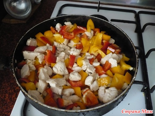 Тушим до мягкости перца и готовности курицы, минут 5-10. Пробуем и еще подсаливаем, если надо. И все! Добавляем гарнир. Приятного аппетита!