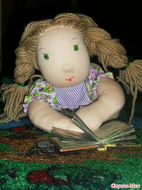 умненькая и серьезненькая! это, не вальдорф!!!! вальдорф глазки и ротик просто обозначены. может быть или не быть носик. смысл же в том, что ребенок в процессе игры передает свои эмоции кукле. грустно ему,он видит грустную куклу и наоборот. я шью вальд. извените за критику. есть еще недочеты. устраняя недочеты приближаемся к эталону. работа очень аккуратная. если хотите пообщаться пишите. garu57@rambler.ru. неудобно писать с тел. еще раз удачи