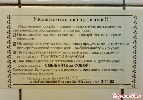 "Печатный шрифт опасен раком" - вообще шедевр, да еще по телефону 3-11- 55 сообщить о достигнутых результатах!