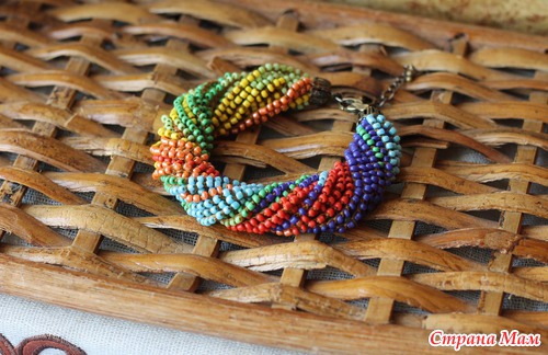 Ну, и напоследок, браслет "Разноцветье". Яркий браслетик, выполненный из радужного бисера и полиэстровой разноцветной ниточки. Блестит, пестрит, переливается, привлекает взгляд - это всё о нём! Тоже пока свободен!