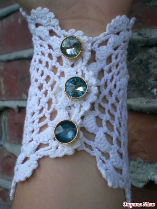 АЖУРНЫЕ МАНЖЕТЫ-БРАСЛЕТЫ КРЮЧКОМ.