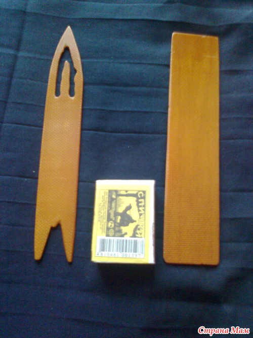 Челнок и планка. Инструменты необходимые для плетения сети. Их можно сделать самим из пластмассы, дерева, жёсткого картона. Ширина планки - это размер ячейки сети.