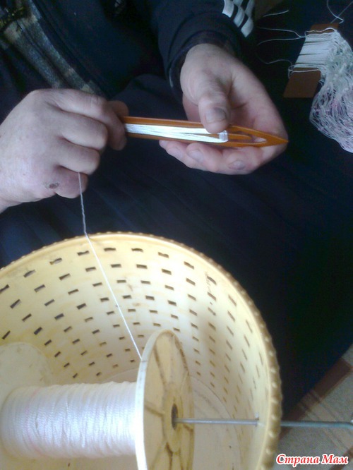 Заполняем челнок нитью.