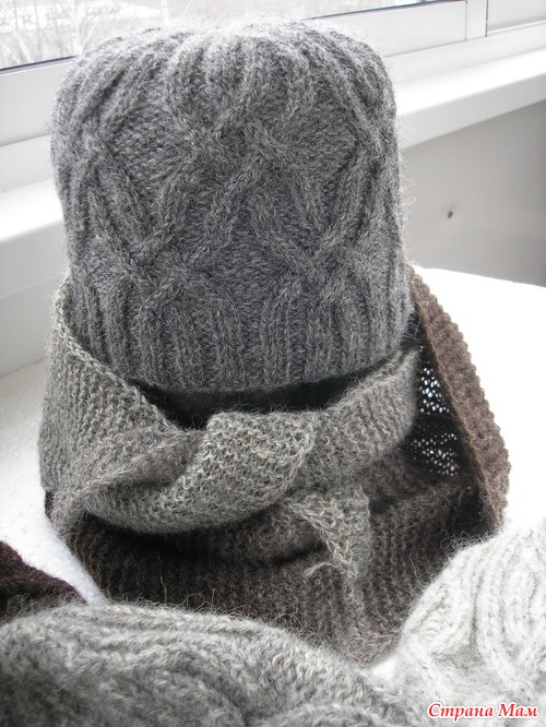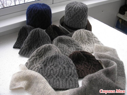 Да и о шапочке: пряжа Кауни 8/2 и 8/3, цвета натуральные не окрашенные, спици 3,0 и 3,5, расход 70 - 80 гр. Вот схема и описание.