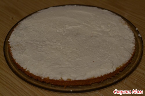 Корж пропитала апельсиновым соком(для кислинки) и сверху нанесла сливки