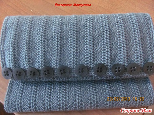 Дело было так-заказали мне шапку, а потом попросили к ней шарф связать, и все что то мы определиться не могли, то ли шарф вязать, то ли снуд. В итоге пришла мне мысль пришить пуговицы и вуаля, застегнул пуговки-вот тебе снуд, растегнул-вот тебе шарф)))). Очень надеюсь что кому нибудь идея понравится. Спасибо всем за внимание. Ниточки брилиан, ушло 1,5 моточка. Ширина 30 см, длина 1,4м. Узор выбрала в галлерее машины, обвязан рачьим шагом.