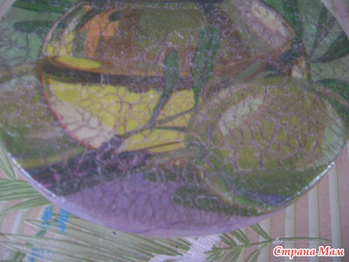 Кратко скажу как делала. Сначала 2 слоя белой акрил. краски, затем салфетка, затем 2 слоя лака, далее 1 шаг кракелюра, через 1 час 2 шаг кракелюра и вновь покрывала лаком. Только вот здесь не совсем поняла, лак почему-то стал вспучиваться", и никакой гладкости, кот. д. б. после лака, не наблюдалась. Пришлось наждачкой немного пройтись. Девочки, милые, кто пользуется таким кракле, скажите, что я ни так делаю