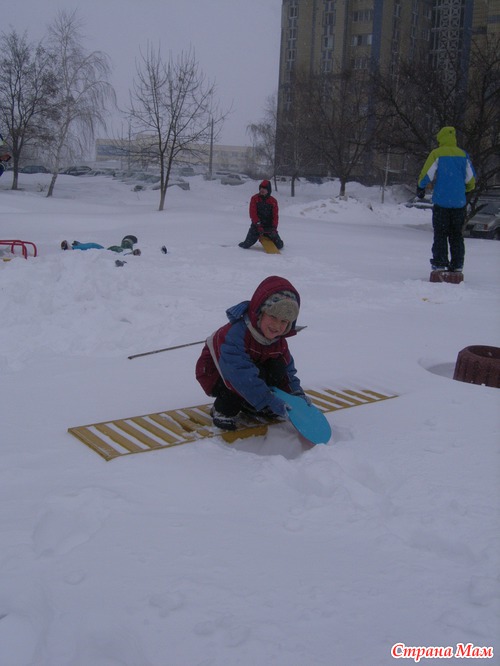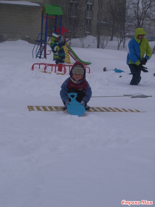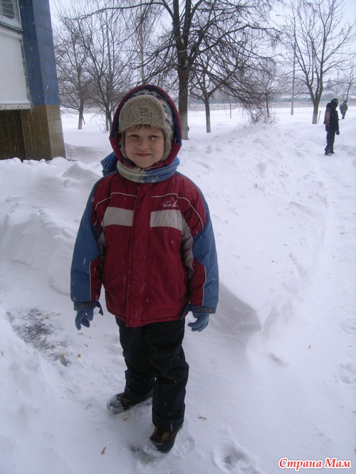 уроки основ здоровья не прошли даром, сын не идет в сугроб по колено, а ложится и перекатывается, чтоб не провалиться