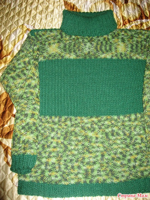 как то пошла на рынок. а там распродажа пряжи в одном из павильонов, вот и купила я себе 4 мотка RAINBOM RAM длина мотка 500м, очень мягенькая пряжа, но на свитер не хватало, вот и пошла в магазин докупила и вот, что получилось, как говорится я его слепила из того, что было, муж доволен