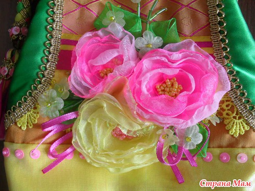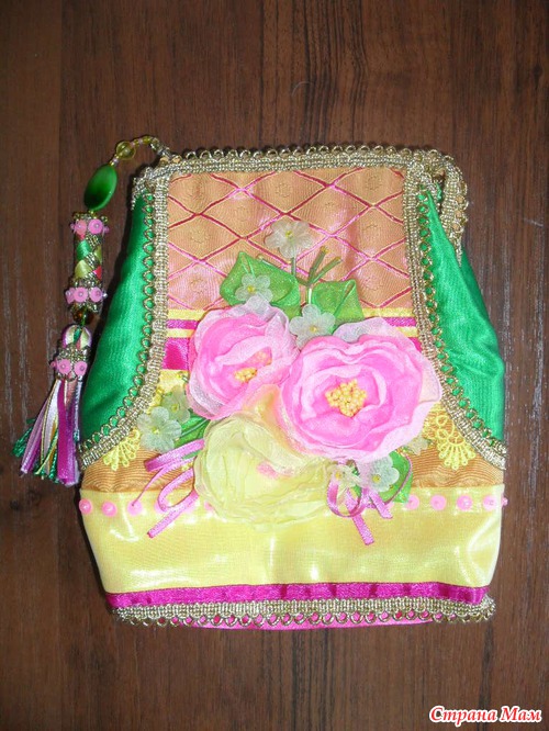 Так там всё вручную пришито! Даже молния. На машине только печворк из тканюх. Да и материал недёшев. Шёлк, парча, ленты дорогие, кружево, бусины и басер тоже с неба не падает. Такие на "Ярмарке Мастеров" есть http://www.livemaster.ru/item/168181/sumki-aksessuary-sumochka-kosmetichka похлеще стоят. Как-то не охота сутками над ней сидеть и отдавать за копейки. Извините.