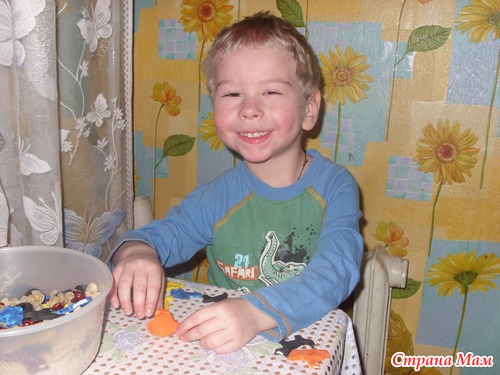 Купила для Димасика своего формочки для лепки, рада сама этому факту больше ребенка. И тут же мы принялись за работу. Сначала просто полепили