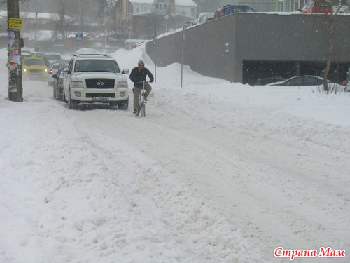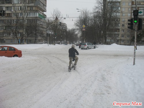 Вот такую картину сегодня с мужем застали на улице )) А что оригинально )) Где проехать не смог - перенес велик и поехал дальше, все ж не ногами снег месить )) Читать полностью