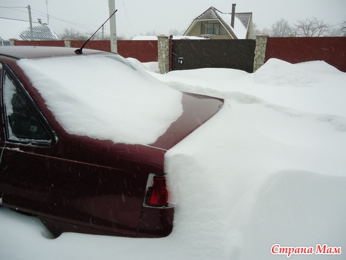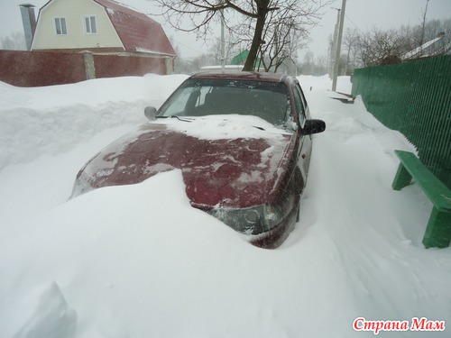Возле порога отчистили с горем снег, метель не заканчивается, да еще очень ужасный ветер. И вот выйдя за калитку увидели свою машину