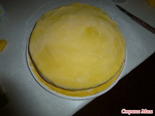 края не смогла подвернуть под торт мастика липла и борт подноса не позволил сделать это...