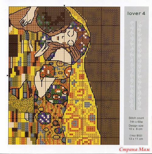 Поцелуй Климпта который предпоследни по счету если повесить в спальне поможет наладить смейные отношения с мужем. На себе проверено: у меня календарь с репродукциями разных художников как доходим до этой(вывешиваем) весь месяц сполошной мед! хочу вышить, спасибо за схемы!