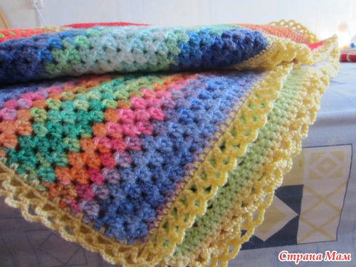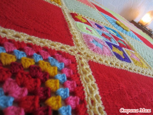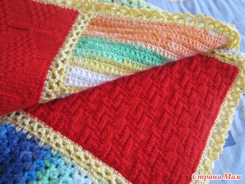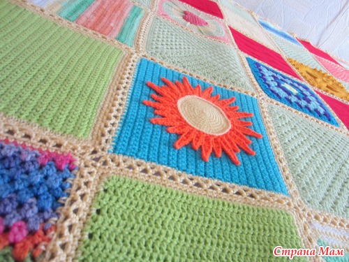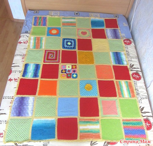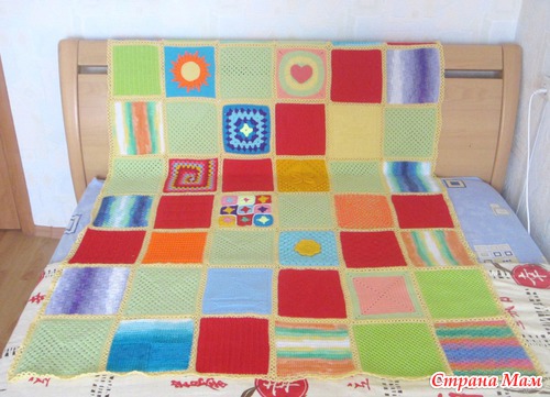 Здравствуйте, дорогие странамамочки! Я к вам сегодня с необычным одеялом... Это одеяло-оберег связано для маленького мальчика Антошки Коробова, который сейчас очень болен. Вязали его по квадратику девочки из нашего города, чтобы передать частичкку своего тепла, своей заботы, своей души. Сборка - моих рук дело. Не судите строго, это мой первый подобный опыт. Одеяло получилось очень теплым, радостным и позитивным. Надеюсь, Антошке оно подарит ту теплоту и радость, которую мы в него вложили. Поправляйся, солнышко!
