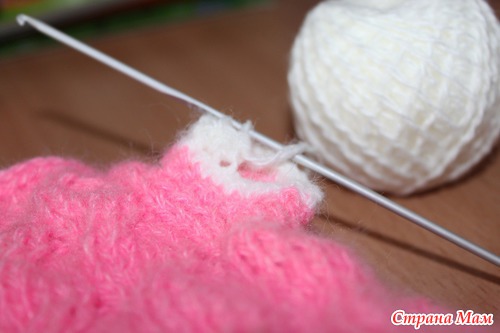 Довязав сарафан до начала большого пальца, сделала два ряда убавок, чтобы получилось 24 петли.