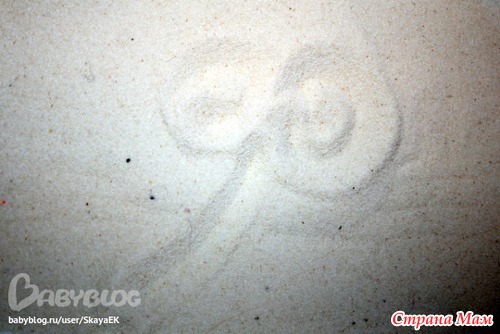 Саша пишет буквы на крупе. Опять же на этом фото, исключительно Сашина работа. Что я ее просила написать, то она и написала. Я сама была немного в шоке. Конечно, далеко не со всеми буквами все так красиво получается. А к концу алфавита, дочка вообще перестала любить писать их на крупе. Теперь на доске выводит.