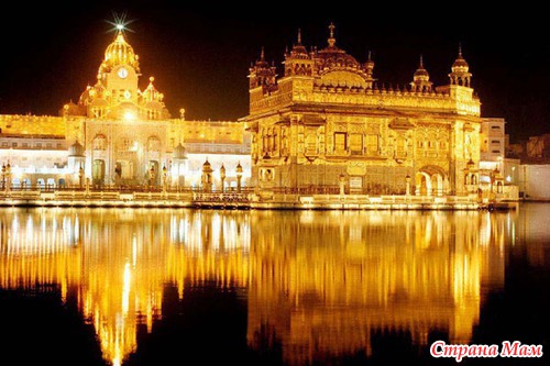 Золотой храм. Этот главный храм сикхской религии находится в городе Амритсар, что в индийском Пенджабе. Построили его в 1589 году. Начиная с 1604 года, в нем хранится оригинал священной книги «Ади Грантх», написанной гуру Арджаном. Для сикхов храм является символом их свободы и духовной независимости. Располагается здание на берегу небольшого озера. Говорят, что оно было настолько тихим, что сам Будда приходил сюда помедитировать. Позже на берегу озера возник комплекс и целый город. Сам храм украшен внутри мраморными скульптурами, они позолочены золотом и покрыты драгоценными камнями. Главная часть храма находится посередине озера, пройти к ней можно по узкому мраморному мосту. Он символизирует путь, который люди преодолевают от грешника к праведнику. В храм ежегодно первого сентября съезжаются сикхи со всего мира. Золотой храм получил свое название благодаря покрытию листами позолоченной меди в 1761 году. С тех пор его много раз пытались ограбить и разрушить, однако верующие каждый раз восстанавливали свою святыню. В 1984 году в храме засели боевики, военная операция против их привела к гибели 492 мирных жителей. Хотя это место и видело много крови, сейчас оно открыто для посещения туристами, закрываясь лишь не небольшой ночной промежуток.