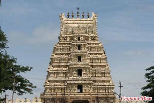 Храм Ранганатхи в Шрирангаме. Это индуистский храм посвящен Ранганатхе, одной из форм Вишну. Это самое большое культовое сооружение в стране. Также храм является наибольшим действующим индуистским в мире. Он располагается на площади в 63 гектара. Согласно легенде некогда один мудрец нес статуи Вишну и решил отдохнуть, поставив ее на землю. Под изваянием оказалась большая змея. Но когда человек решил продолжить свой путь, он обнаружил, что статуя уже нельзя поднять. Тогда на этом месте был построен небольшой храм. На протяжении столетий он вырос и расширился. Теперь комплекс окружен семью рядами стен. Их общая длина составляет 10 километров. На стенах размещены 21 квадратные башни разной высоты. Самая высокая из них имеет 15 этажей и высоту в 60 метров. Гордостью храма являет «Зал тысячи колонн». На самом деле их тут 953. В центральное святилище могут попасть только верующие, именно там находится главное божество. Также в комплексе есть несколько менее значимых святилищ с другими формами Вишну. С этим храмом связан знаменитый алмаз «Орлов». Ведь некогда он располагался в храме, выполняя роль глаза божества.