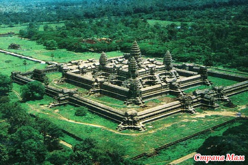 Ангкор-Ват. Этот храм является самым большим в истории, он описан во многих романах и показан в нескольких голливудских фильмах. Построен комплекс был еще в начале XII века на территории нынешней Камбоджи. Это был первый индуистский храм, посвященный Вишну. А в XIV-XV веках на этих земли пришел буддизм, храм стал служить новой вере. Сегодня же в нем можно обнаружить следы обеих религий. Некогда комплекс входил в состав древней столицы кхмеров, города Ангкор. Он занимал площадь в 200 км2, а проживало тут до полумиллиона человек. Западный мир впервые услышал об Ангкор-Вате еще в XVI веке, когда тут побывал один португальский монах. Он писал: «Эту довольно экстраординарную конструкцию невозможно описать словами, в том числе и потому что других таких зданий в мире попросту не существует. В комплексе есть такие башни и украшения, которые только может создать человеческий гений». Эти слова во многом справедливы и сегодня. Окончательно открыт комплекс был французами в 1861 году. С 1992 года сооружения Ангкора находится под защитой ЮНЕСКО. С точки зрения архитектуры храм объединяет типологии храма-горы и галерей. Ангкор-Ват состоит из трех прямоугольных строений, чья высота к центру увеличивается. По периметру храм окружен водный рвом. Его ширина - 190 метров, а общая длина 3,6 километра. Внутренне сооружение составляют пять башен в виде лотоса. Чтобы подняться сюда, надо преодолеть довольно крутую лестницу. Перила или другие средства безопасности попросту отсутствуют. Но только с вершины можно лицезреть всё великолепие форм, приправленных искусной резьбой.