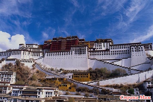 Дворец Потала и храм Джоканг. На вершине Красной горы в Лхасе, Китай, был построен этот комплекс в 637 году первым императором Тибета. Он не нес религиозных функций, являясь лишь дворцом правителя. Сооружение просуществовало 200 лет, и было уничтожено войнами. В середине XVII века пятый Далай-Лама решил заново отстроить дворец Потала на высоте в 3700 метров. За три года был возведен главное сооружение - «Белый дворец», позже появился и «Красный дворец». Долгое время тут жили Далай-Ламы, пока не нынешний не вынужден был покинуть Тибет после китайского вторжения в 1959 году. Теперь тут находится государственный музей.