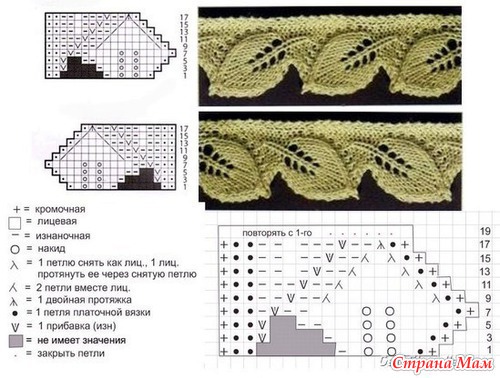 (У меня она несколько отличается: один край каймы связан платочной вязкой, и накиды, наклоняющие листочки, идут рядом с ними, это видно на фото, хотя принцип - тот же).