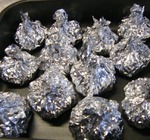 Фарш заправляем луком и специями,лепим из него колобок размером с мандарин и каждый колобок расплющиваем в лепёшку. В середину лепёшки к кладём пару чайных ложек грибной начинки (любые грибы пушёные в сметане) и кусочек сливочного масла.Сворачиваем мясо обратно в колобок и упаковываем в фольгу : кладём колобок в середину квадрата фольги размером с большую тарелку и собираем углы в кучку наподобие мешка с новогодними подарками. Распровляем уголки,которые можно загнуть в виде бантика или цветка.Ставим противень с "подарками" в духовку на 30 мин. Получиться очень вкусно и красиво!!!